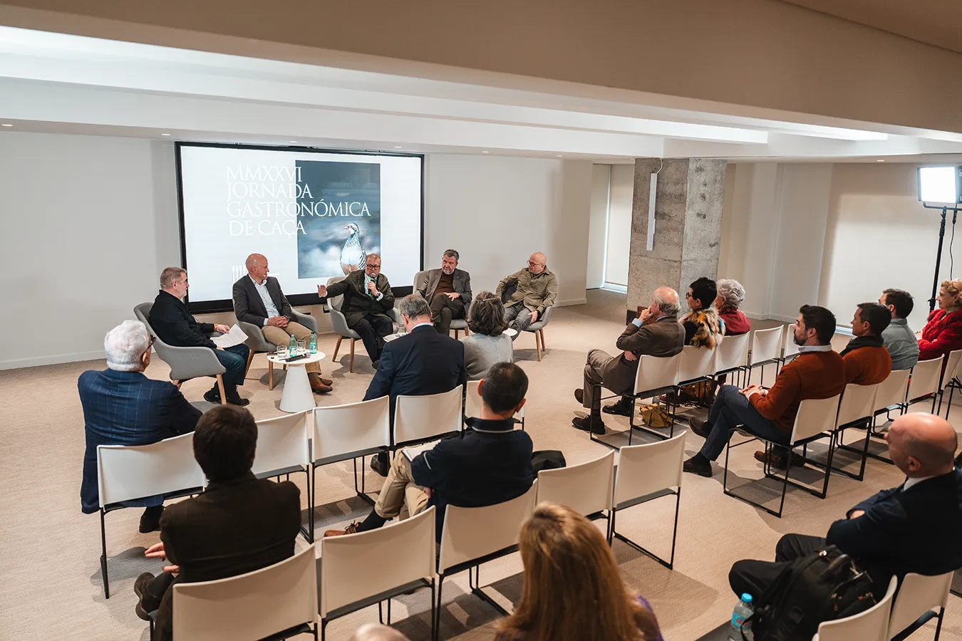 La jornada es va estructurar en dues parts. En primer lloc, es va organitzar un col·loqui divulgatiu al Museu de la Ciència CosmoCaixa, sota el títol “La cuina de caça: sostenibilitat, cultura i territori”, moderat pel periodista gastronòmic Pau Arenós. La taula va comptar amb la participació de Ramon Agenjo, Josep Capdevila, Marc Sobregrau i Jordi Vilà, que van reflexionar sobre la caça des d’una mirada interdisciplinària, abordant-ne el paper en la gestió del territori, la sostenibilitat, la tradició i la cuina contemporània.